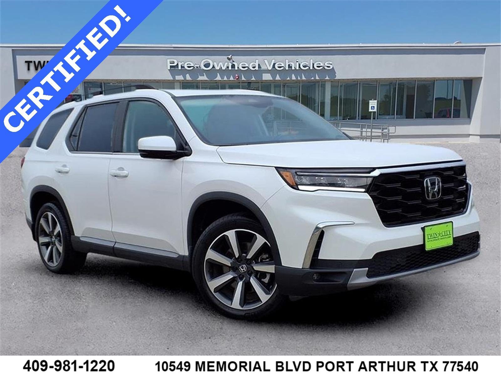 Clean CARFAX. CARFAX One-Owner.Priced below KBB Fair Purchase Price! White 2023 Honda Pilot Touring 3.5L V6 DOHC 24VCertified.HondaTrue Certified Details: * Roadside Assistance * Powertrain Limited Warranty: 84 Month/100,000 Mile (whichever comes first) from original in-service date * Vehicles purchased within New Vehicle Limited Warranty period: extends New Vehicle Limited Warranty to 5 years*/60,000 miles*. Honda Care Roadside Assistance for 2 year/100,000 miles (whichever occurs first). Up to two complimentary oil changes within the first year of ownership. SiriusXM 90-Day Trial. * Transferable Warranty * Warranty Deductible: $0 * 182 Point Inspection * Limited Warranty: 24 Month/100,000 Mile (whichever comes first) after new car warranty expires or from certified purchase date * Vehicle History19/27 City/Highway MPG